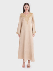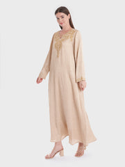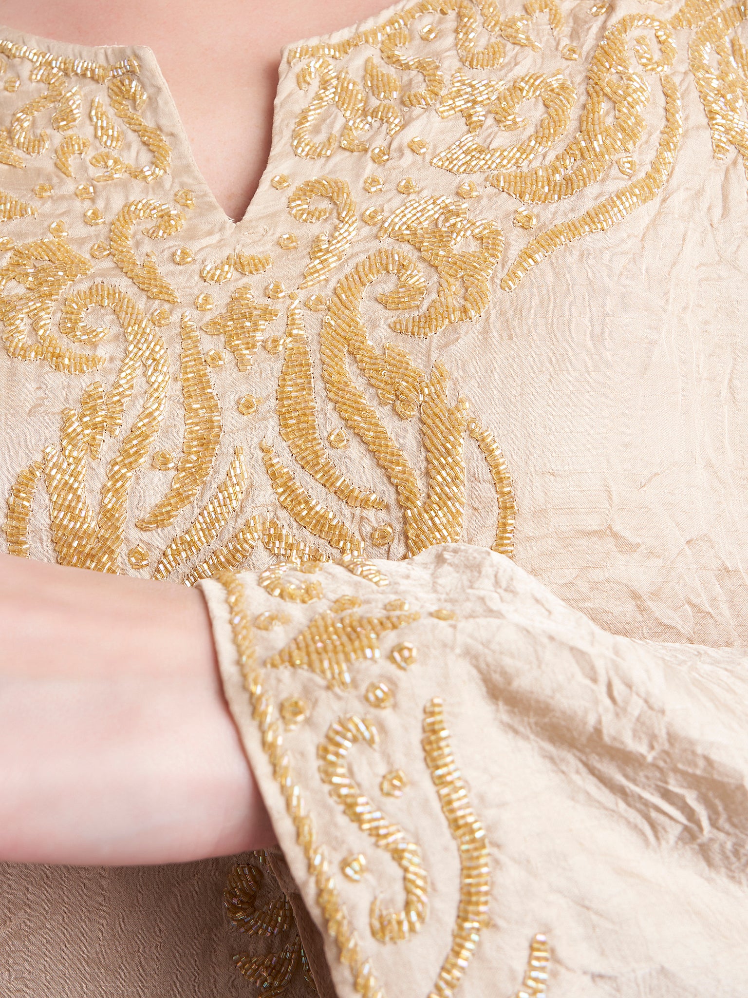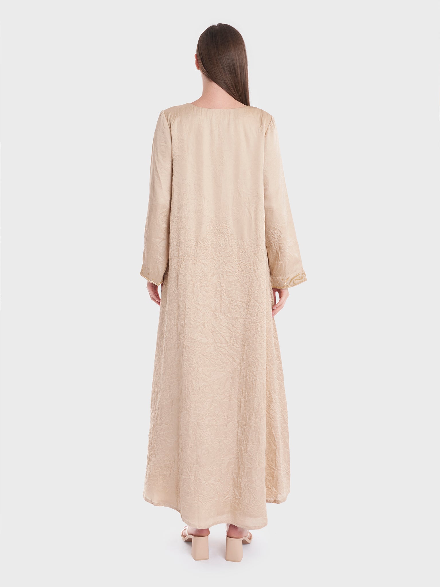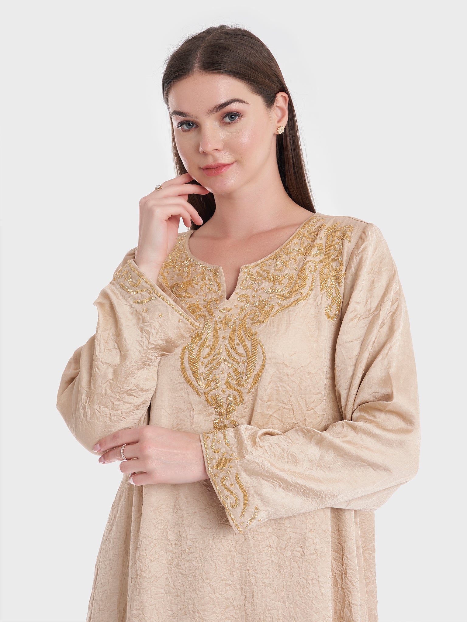 A-line sweetheart neck crushed texture tashan silk polyester jalabiya with beads handwork at yoke and sleeves hem